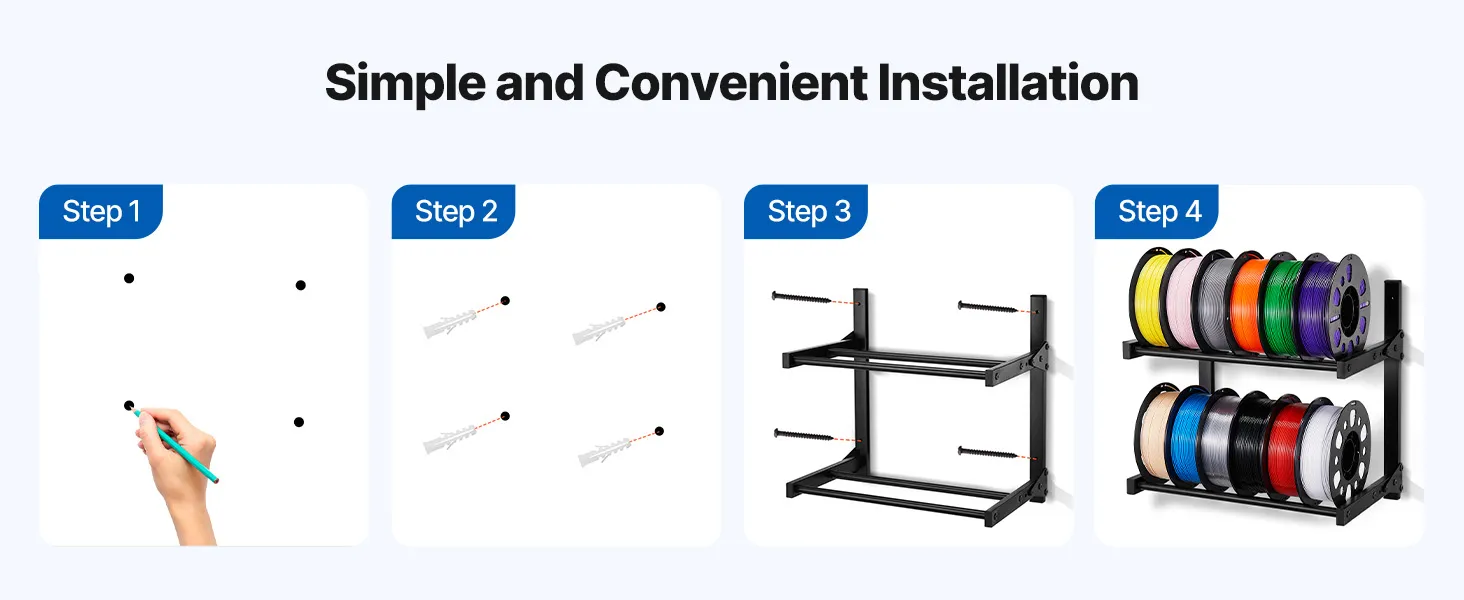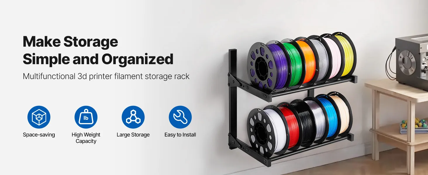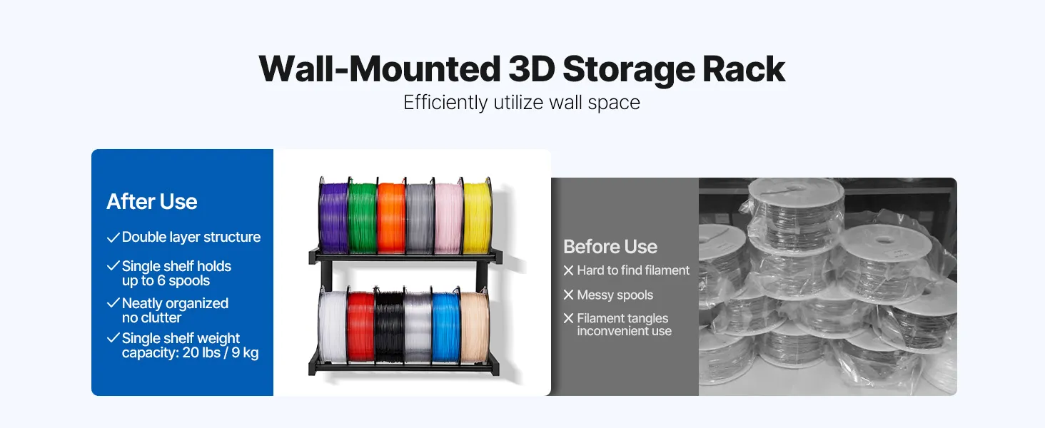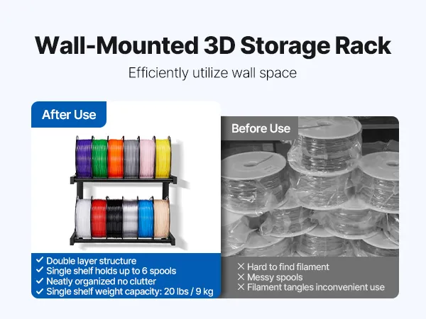 Wide Compatibility: Ideal for 3D printing enthusiasts, workshop owners, or educators, this filament shelf helps organize your tools and materials, increasing efficiency in work or study