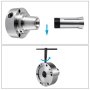 The collet adapter is installed the same way as a 3-jaw chuck—connect it to a backplate and tighten the screw with the hex wrench.