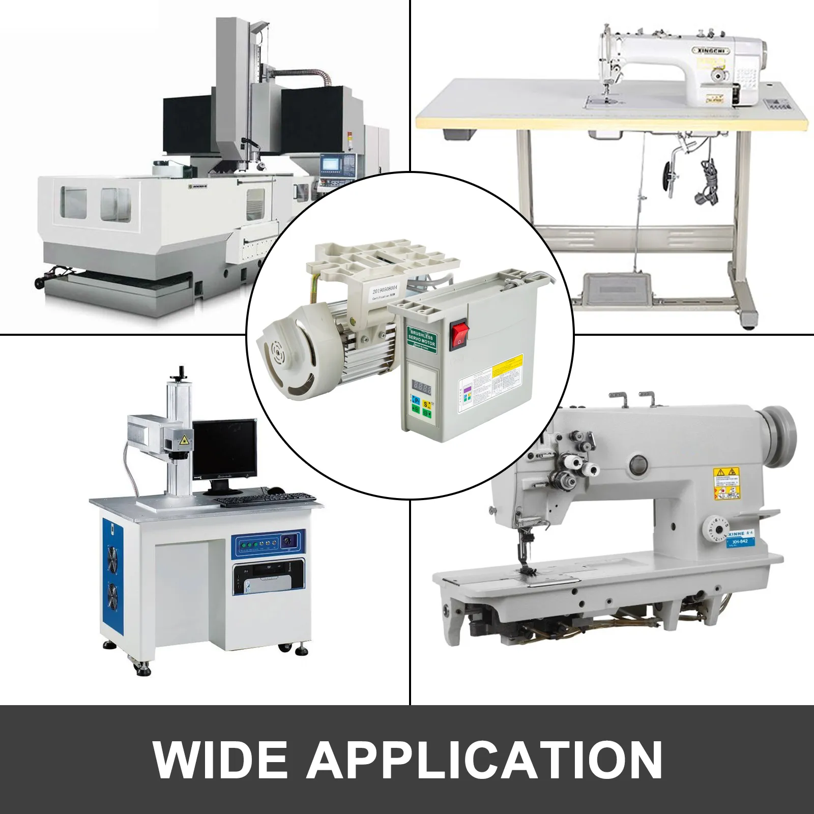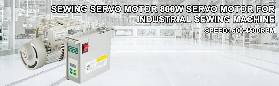 Industrial servo motor speed adjustable up to 4500 rpm, 800W, our brushless electric servo motor is designed for industrial sewing machine. Braking power, responsive, high sensitivity, low noise drive, almost no vibration, energy saving and environmental protection.