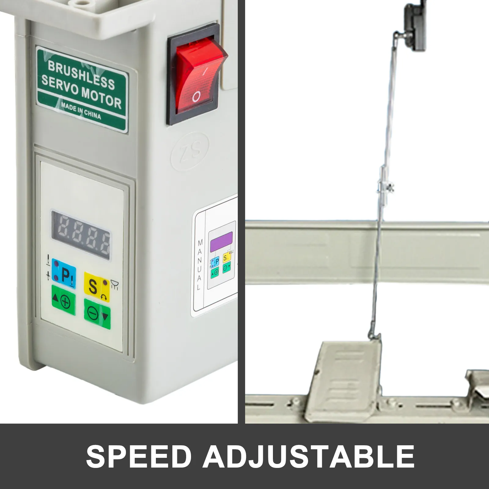 Allowed to freely adjust its speed within 500-4500RPM. LED screen indicates accurately the speed. A tie bar connects with pedal to make infinitely variable speed.