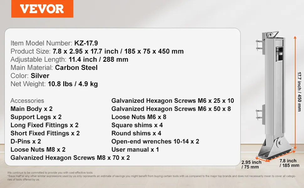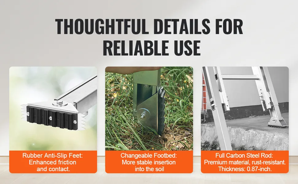 Anti-slip rubber feet enhance surface contact for stability. The full-threaded rod increases friction to prevent loosening. Made from high-quality carbon steel, it’s rust-resistant and durable, ensuring long-term reliability and safety.