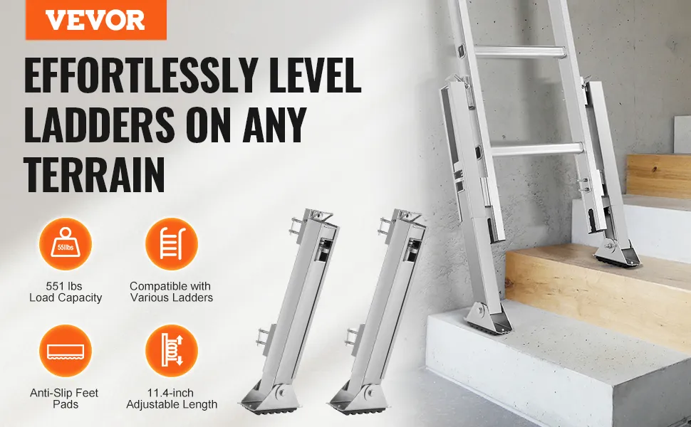 Effortlessly level your ladder on any terrain with this leveler. Supporting up to 550 lbs and compatible with various ladder types, it features anti-slip pads for secure stability. Tackle complex surfaces with confidence and ensure safety every time.