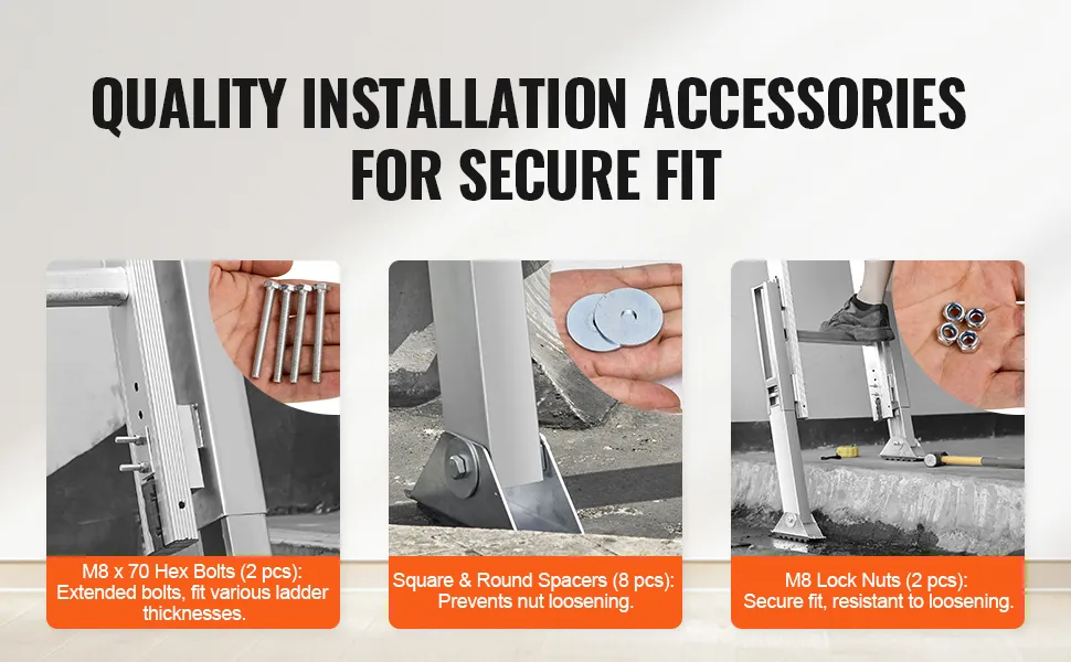 • Fast Setup: Install quickly with just marking, drilling, and fixing—no complicated steps required. Ensures a balanced ladder and improves work efficiency with ease.