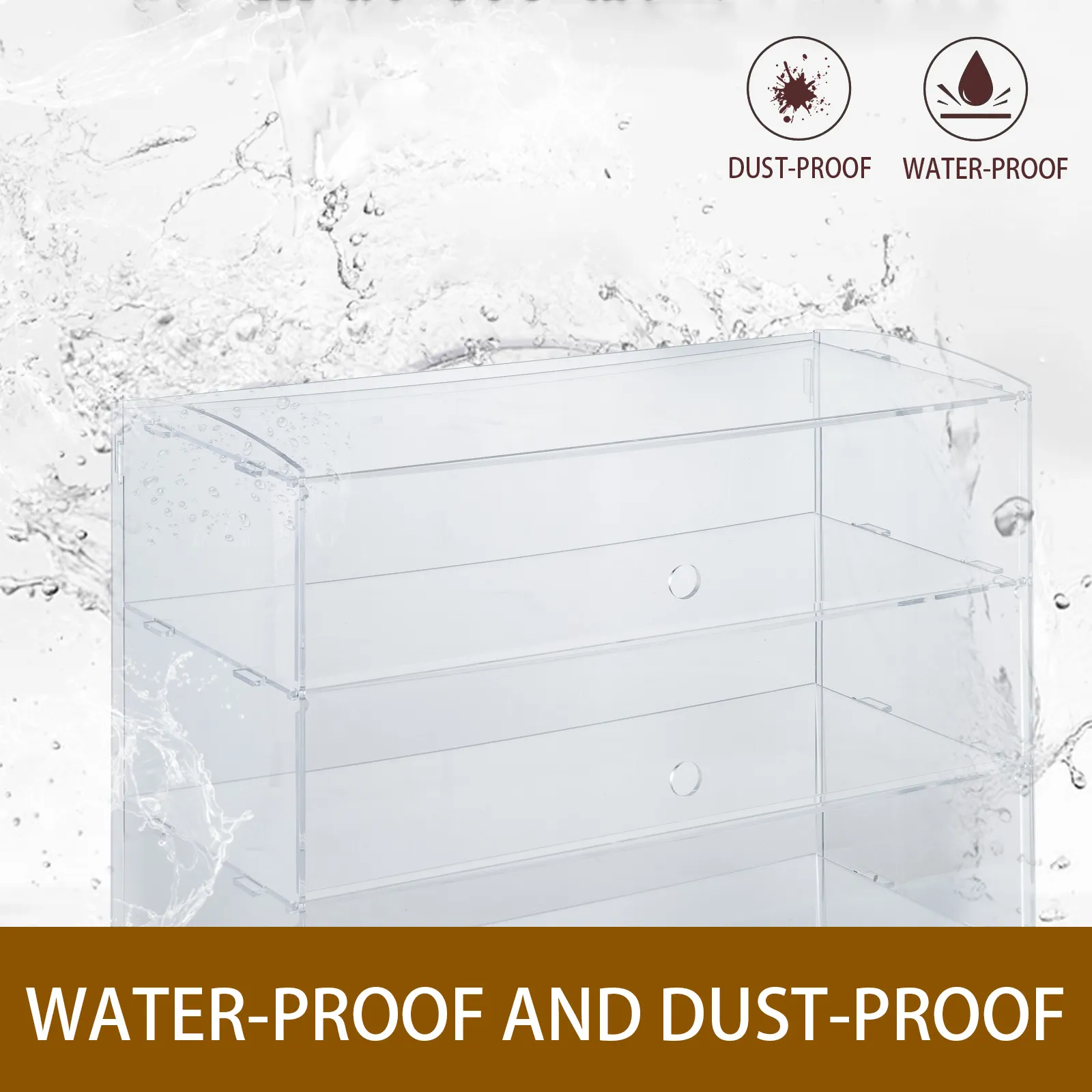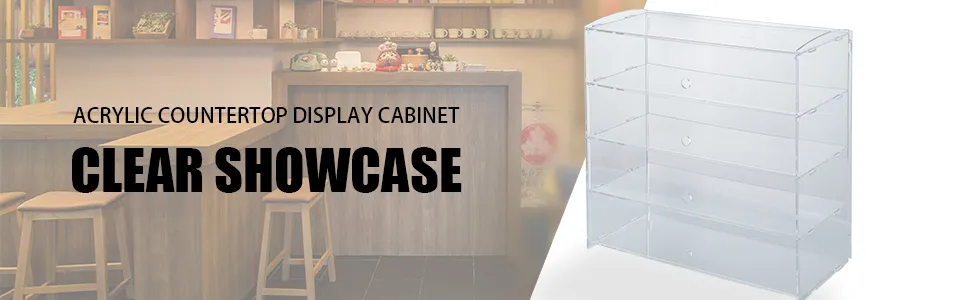 This countertop showcase is made with premium clear acrylic material. Safe, harmless, hard, robust, suitable for work in many environments(food store, ornament store, home, etc). The material is also easy to clean.