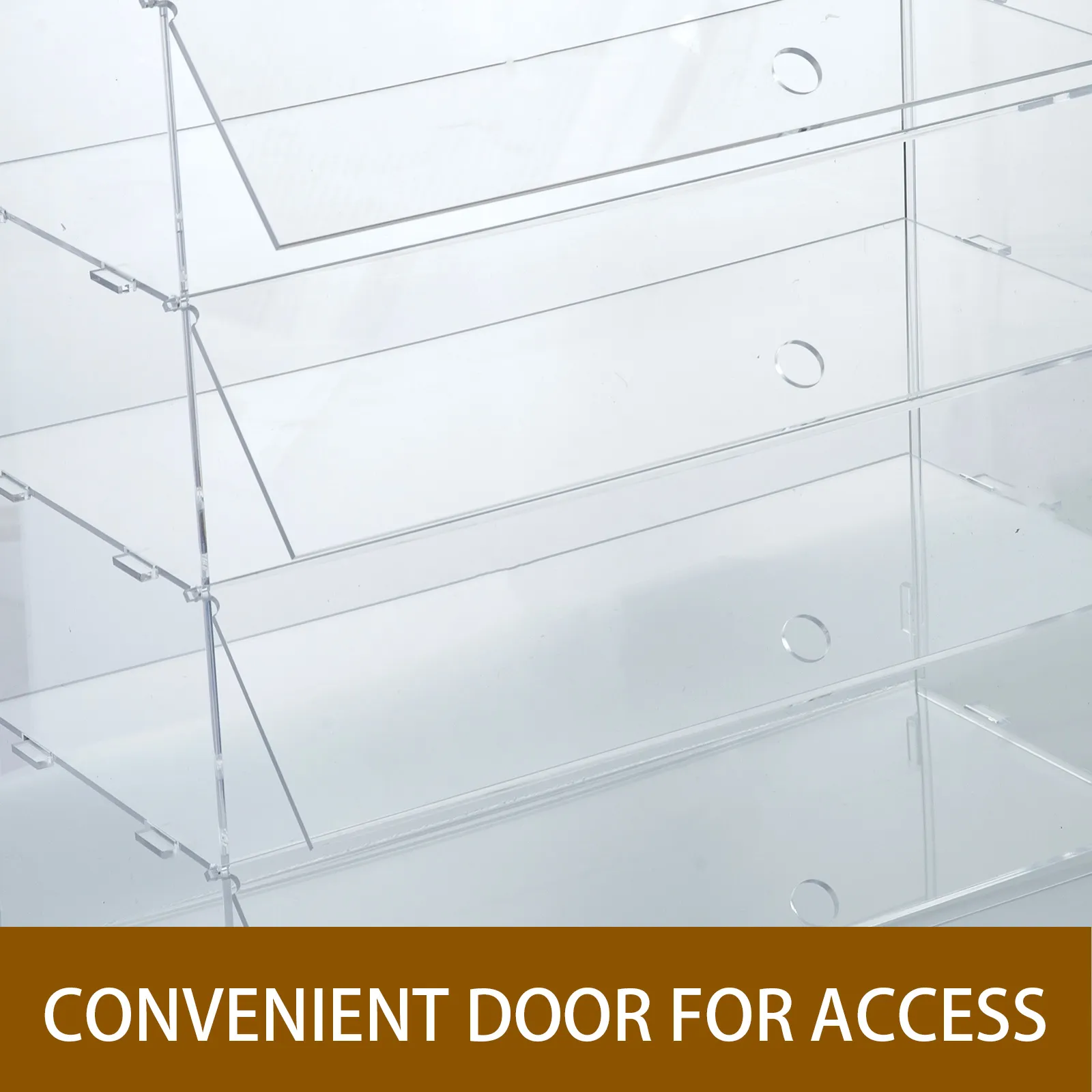 All-round transparent display offers people a great view of the product inside. The light transmission of the acrylic can be up to 92%, which supplies sufficient light and makes contents inside easily recognizable.