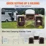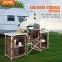 The VEVOR camping kitchen table has enough storage space. The under-table storage compartments allow you to keep cooking tools, utensils, and food organized and within reach. Storage sections zip up, keeping items safe from bugs and dirt. Sturdy shelves hold pots, pans, and other essentials securely, so you can focus on cooking. Its thoughtful design allows you to stay organized while working. You have all your necessary equipment close by. This barbecue table ensures you have everything neatly organized and can access it easily while cooking!