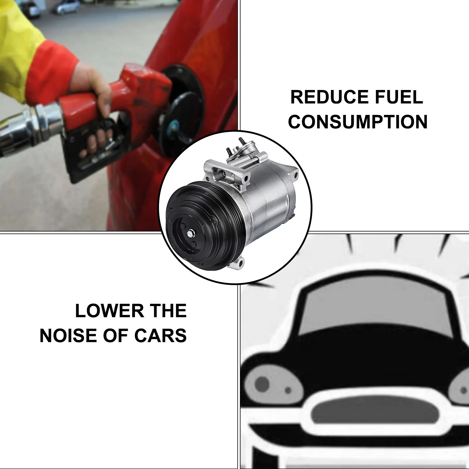 【NOISE & FUEL REDUCTION】- This type of air condition compressor operates smoothly with little vibration to lower your car's noise. Meanwhile, its high efficiency of automatic adjustment and integrated drive can lessen its oil consumption.