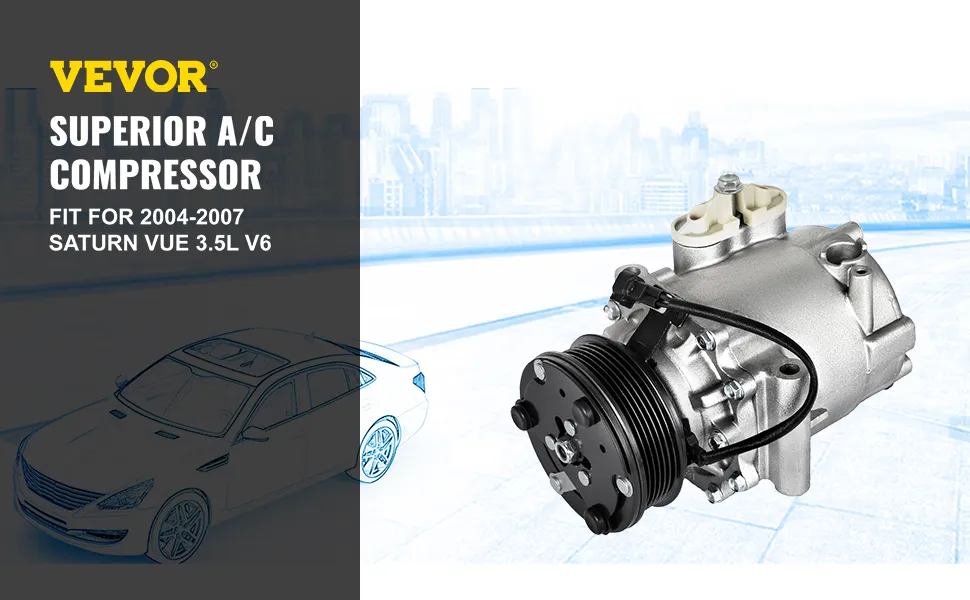 This AC compressor is suitable for the 2004-2007 Saturn Vue 3.5L V6. The compressor is made of premium aluminum material and tested to meet or exceed OEM specifications. With its fast cooling refrigeration and comfortable installation quality, you will find it an ideal replacement for your sweet car.