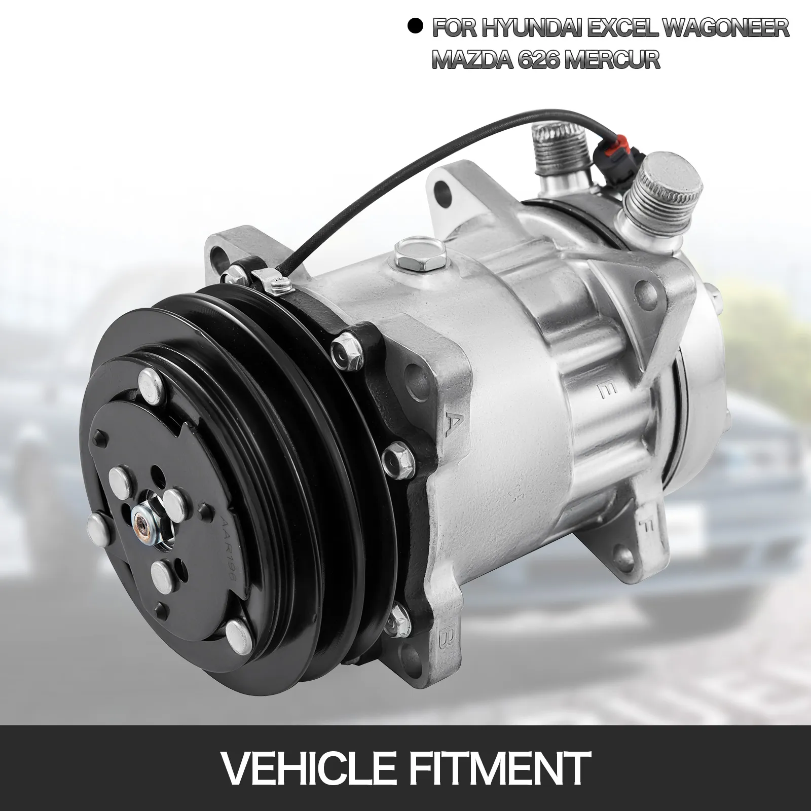 This air compressor fits for 1982-1995 Hyundai Excel 1.5L;Jeep Wagoneer 2.5L;Mazda 626 2.0L;Mercury Tracer 1.6L;volvo 745 2.3L 2.4L/850 2.3L 2.4L/940 2.3L 2.9.