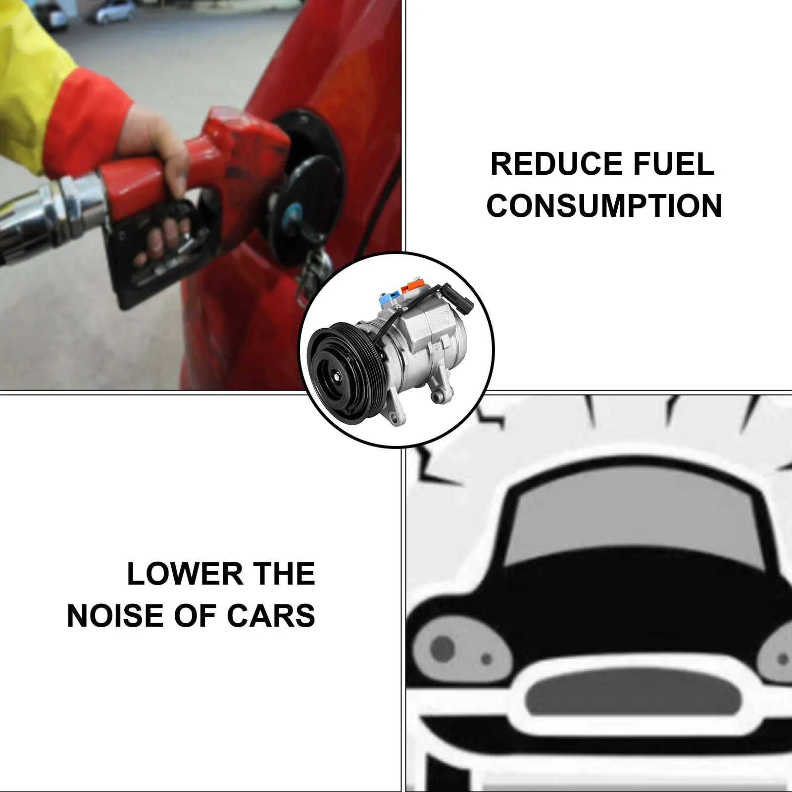 【NOISE & FUEL REDUCTION】- This type of air condition compressor operates smoothly with little vibration to lower your car's noise. Meanwhile, its high efficiency of automatic adjustment and integrated drive can lessen its oil consumption.