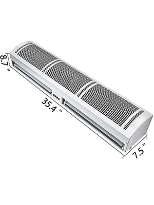 The air curtains for doors are equipped with 4 buttons to change the speed of the wind. With a high speed of 1352 CFM, a medium speed of 1187 CFM, and a low speed of 1082 CFM.
