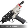The hog ring gun pneumatic driven tool has a robust carbon steel construction. It offers efficient and firm strapping. Compact size allows for easy carry. Air compressor: 70-100 psi.