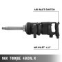 The impacts wrench delivers 3,540 ft.lb/4,800 N.m maximum torque and 3,200 RPM rated free speed, which is enough for even the most stubborn nuts and bolts. Max air pressure: 171 PSI. The Air inlet is 1/2".