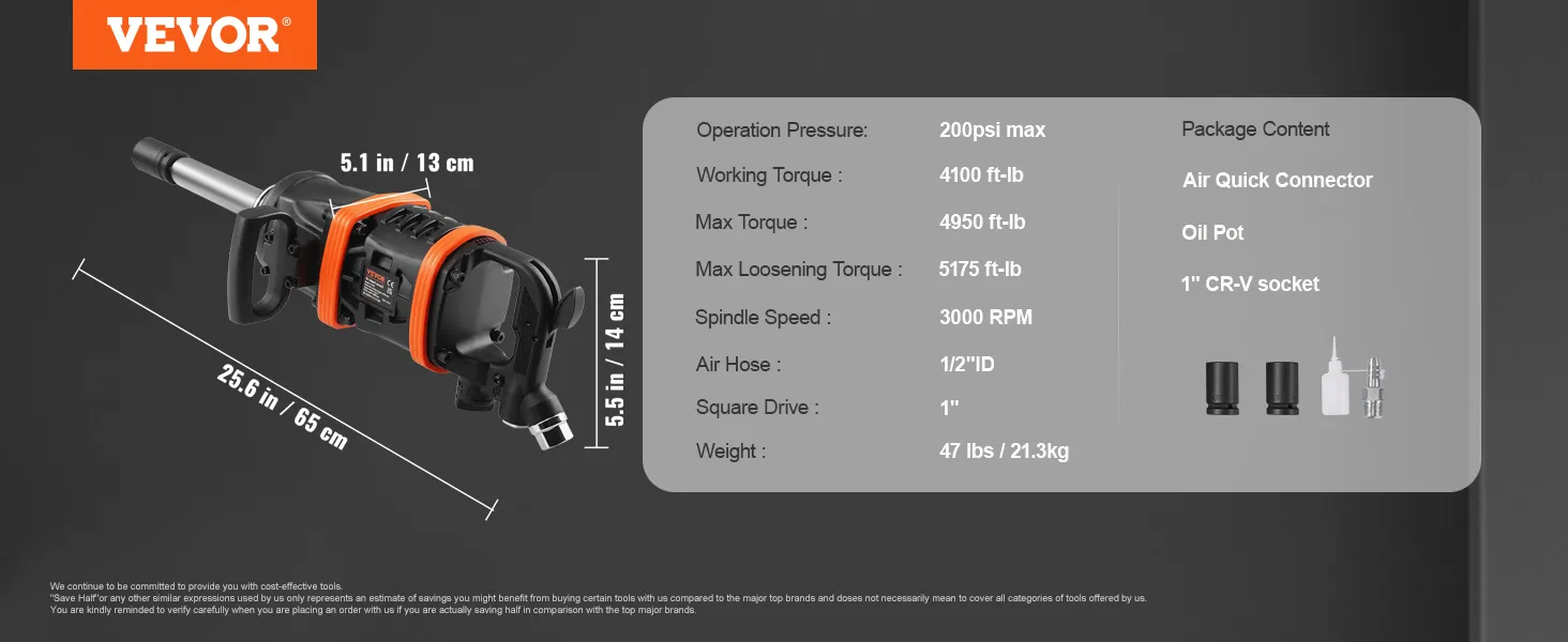 Beast Performance: Deliver up to 4950 foot-pounds high torque output and the breakaway torque even reaches 5175 ft-lbs, more powerful air impact wrench to tackles heavy duty vehicle applications, like heavy truck, bus, and tractor tires.