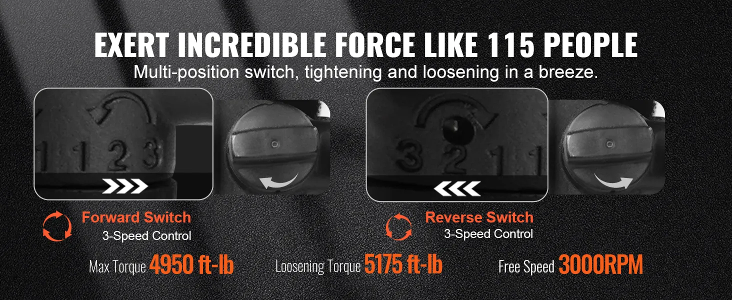 3000RPM free speed and 5175 foot-pounds loosening torque, equivalent to the force of 115 people working together, stubborn bolts and nuts.