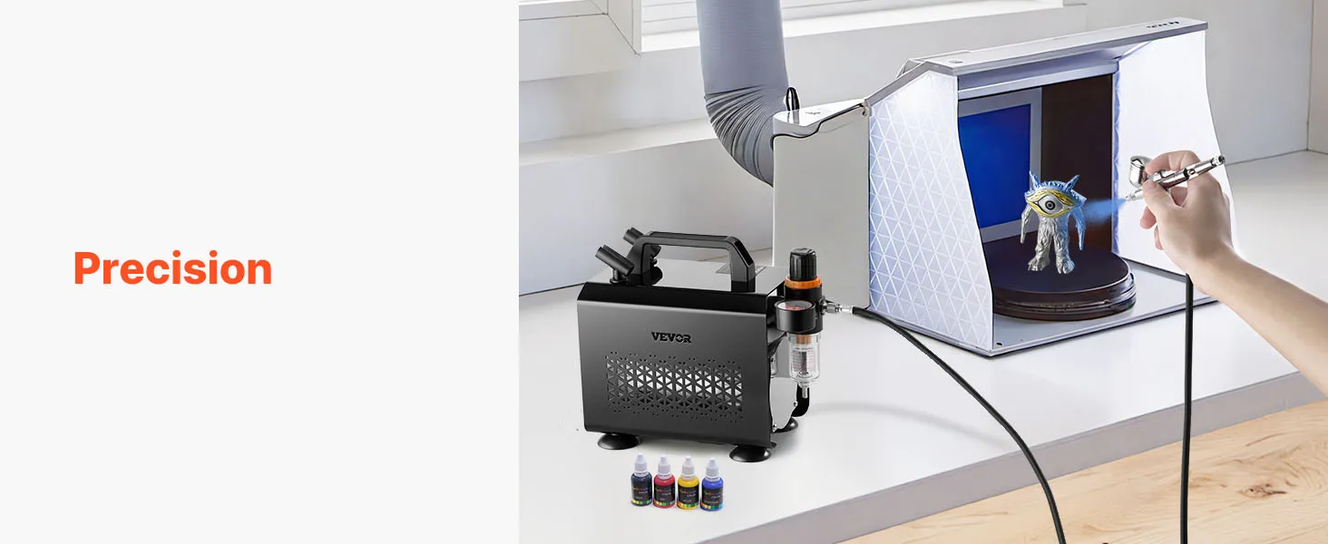 Low Noise Operation: The air brush kit with air compressor runs quietly even during long use, helping you stay focused on your art. Whether in a studio or at home, enjoy a peaceful and creative environment that keeps your ideas flowing