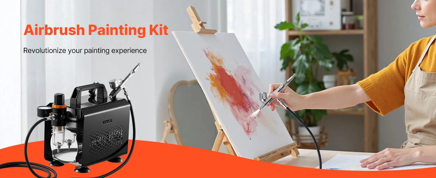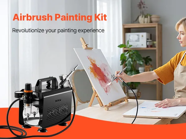 VEVOR Airbrush Kit, 1/6 HP, Air Brush Kit with Air Compressor, 1 Dual-Action Professional Airbrush with 3 Tips, Hose, Acrylic Paint, Brush, Low Noise, for Cake Decorating, Model Painting, Nail Art