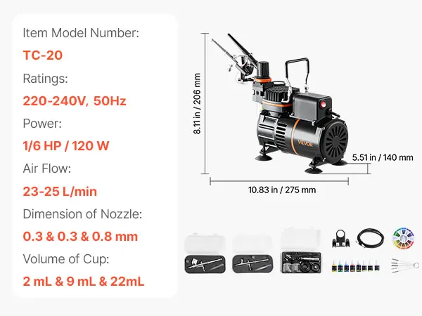 Overheat-Proof, Long-Lasting Use: The air brush kit with air compressor is built with dual cooling fans to support 20+ minutes of continuous use without overheating. Enjoy consistent airflow (23–25L/min) and smooth operation during large projects
