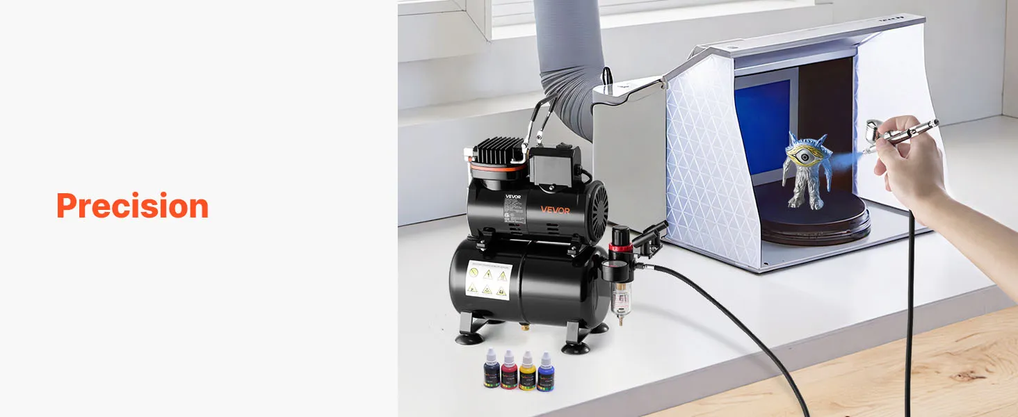 Low Noise Operation: The air brush kit with air compressor runs quietly even during long use, helping you stay focused on your art. Whether in a studio or at home, enjoy a peaceful and creative environment that keeps your ideas flowing
