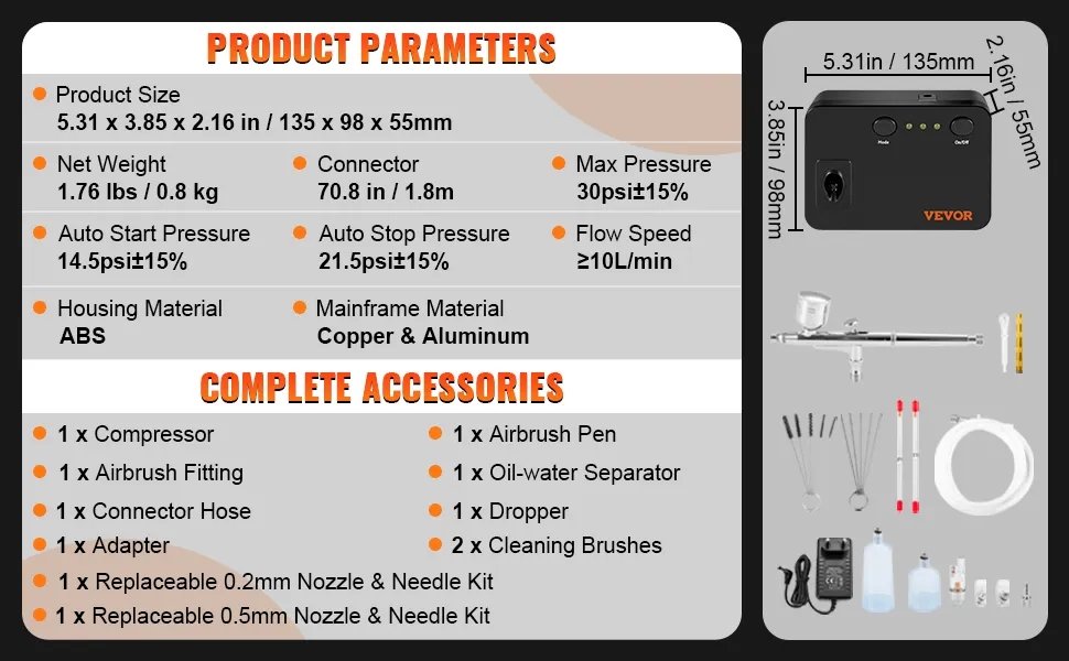 Dual-action Control & Power: The knob at the end of the airbrush is used to control the flow rate while the trigger on the top is for air and paint flow control. Thus, our double-action airbrush pen kit is able to produce lines of different spray thicknesses. In addition, when the pressure reaches the specified value, the compressor will automatically stop working. When the pressure is gradually reduced during use, the compressor will automatically open to increase the pressure and stop to reach your specified value. Auto on/off function makes your every operation easy and convenient!