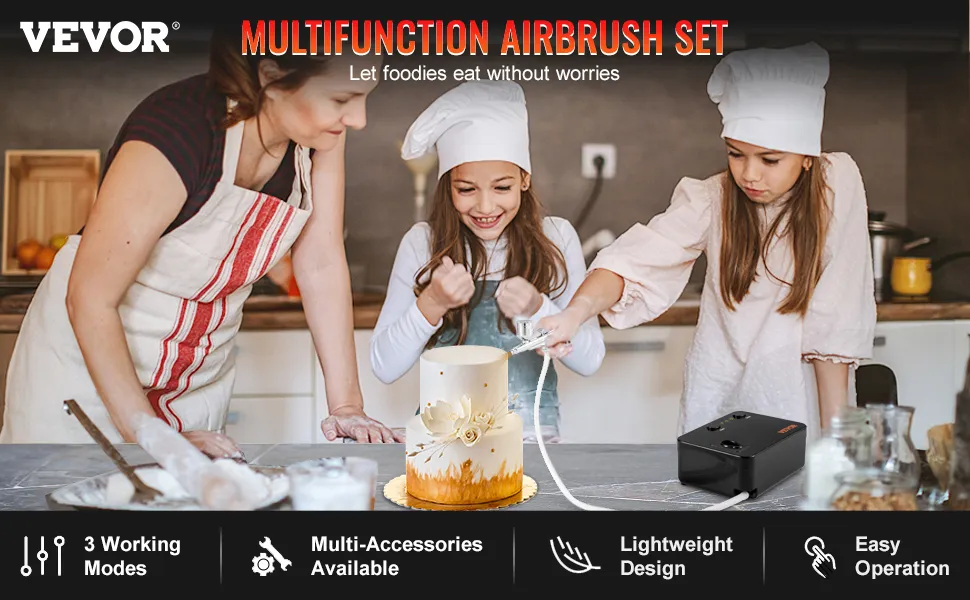 FDA food-grade standard airbrush makes baking fun and effortless. Enjoy snacks, cakes, and ice cream at ease!