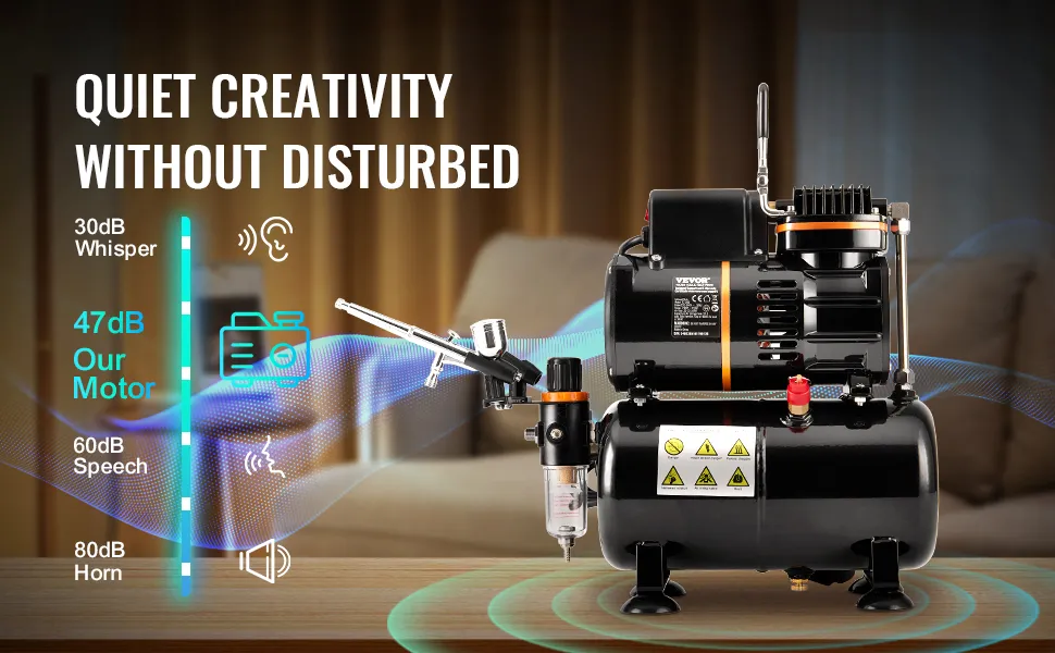 The high-quality motor of our air brush set allows it to run steadily at a low noise level of 47dB. You can focus on your creations in a quieter and more comfortable working environment, making your work more efficient.