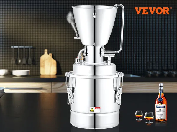 Multipurpose Usage: You can make whisky, wine, vodka, distilled water, ethanol, and essential oil, and also ferment fruits and vegetables, and soybeans via our stainless steel alcohol distiller. The thickened bottom can be heated in various ways, including open fire, induction cooker, electric stoves, etc.