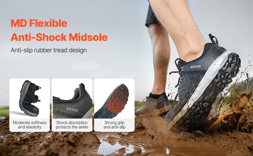 Lighter Weight: Compared to steel-toe shoes, our men steel toe sneakers use aluminum alloy for the toe cap, making them 26% lighter. The breathable mesh upper prevents discomfort from sweaty feet, while the soft rubber sole provides additional comfort. These shoes are perfect for construction workers who need to stand or walk for long hours on job sites.