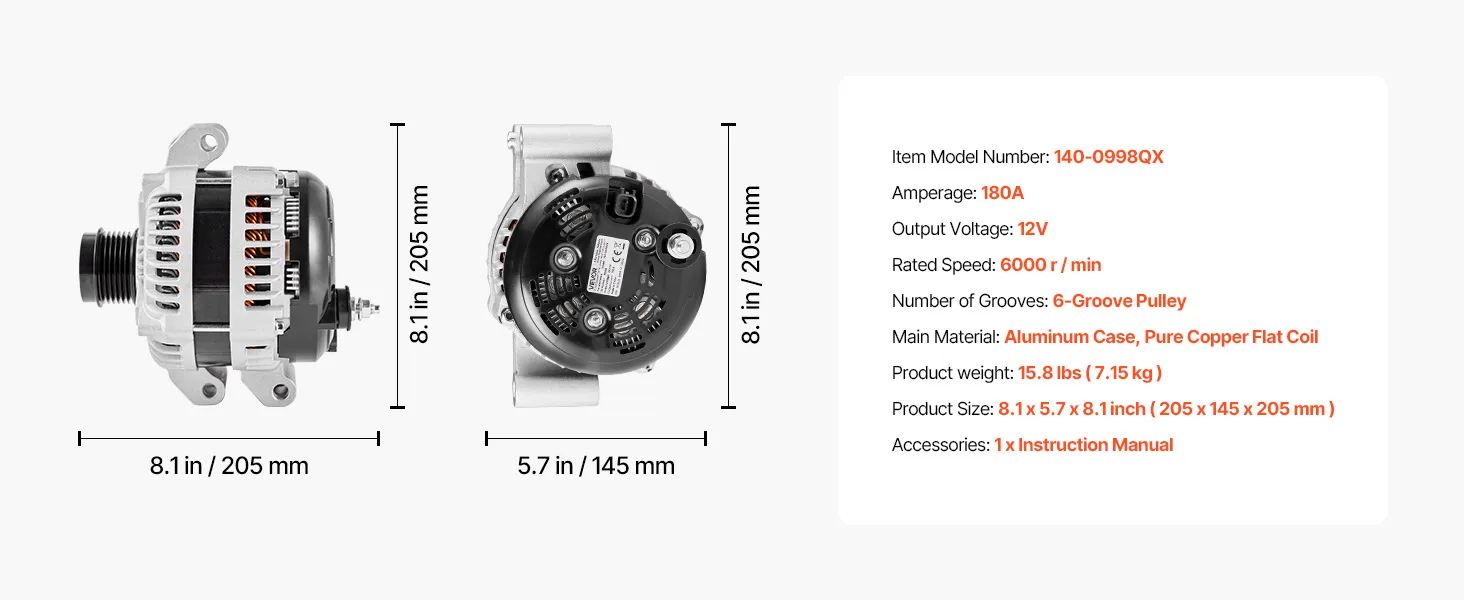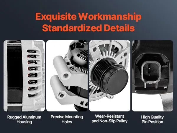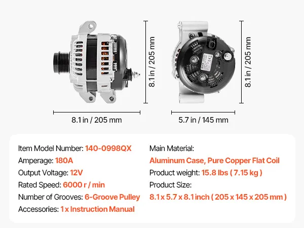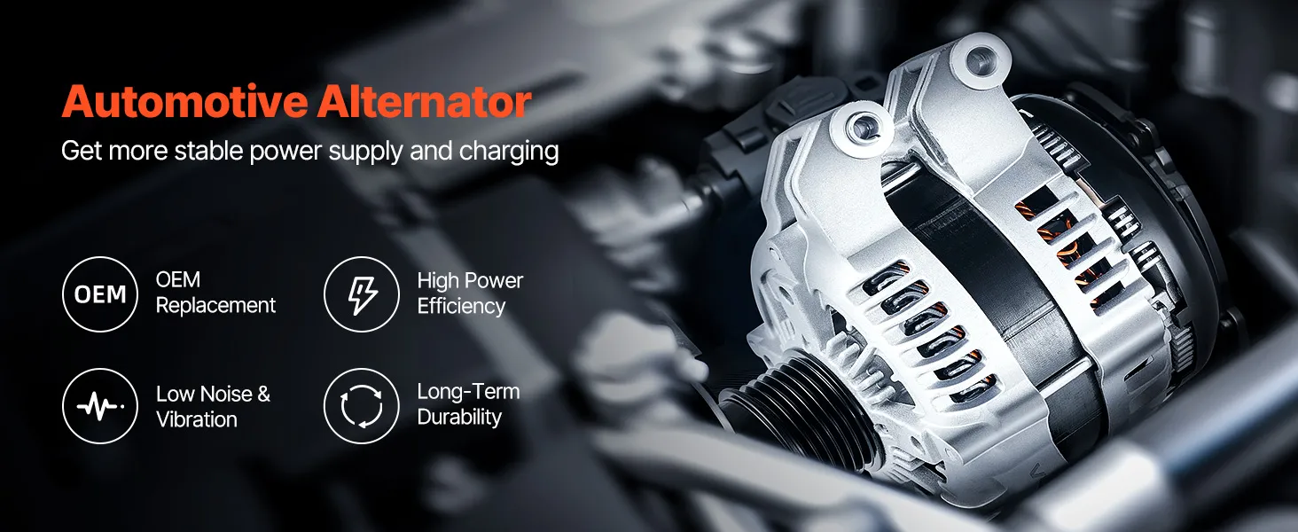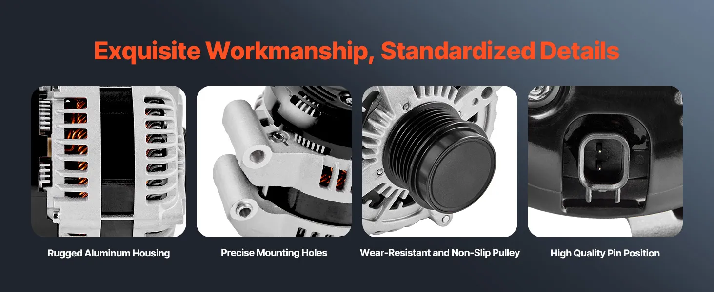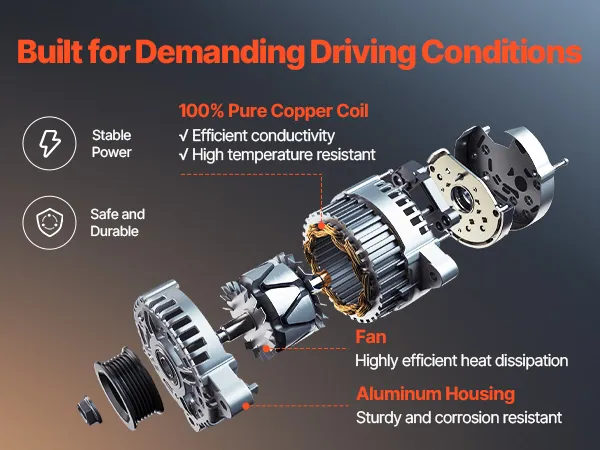 Our alternator replacement features pure copper coils for better durability than aluminum. The aluminum housing and cooling fan boost heat dissipation. It delivers a stable 130A output to support high-load devices like AC and premium sound systems.