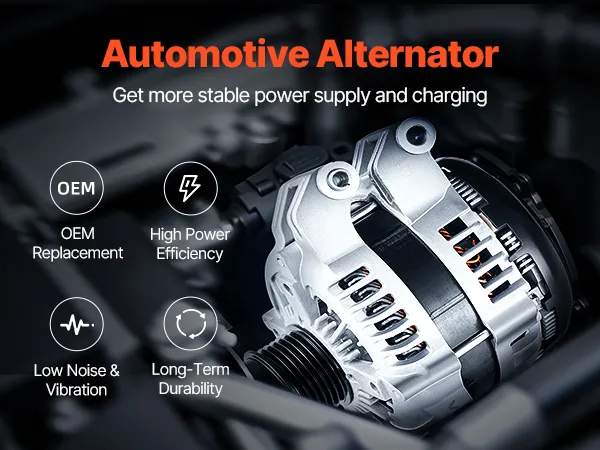 Durable Materials: Our automotive replacement alternator is built with high-temp-resistant copper coils and a lightweight aluminum housing with cooling fan. This combo improves heat dissipation and conductivity while withstanding tough conditions