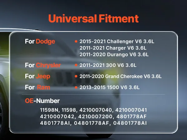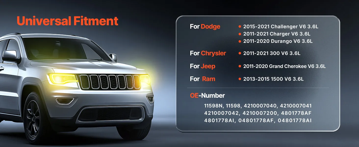 Vehicle Compatibility: Our alternator works great on sedans, sports cars, SUVs, and pickups. It fits Dodge 2011-2020 Durango V6 3.6L, Jeep 2011-2020 Grand Cherokee V6 3.6L, and Ram 2013-2015 1500 V6 3.6L