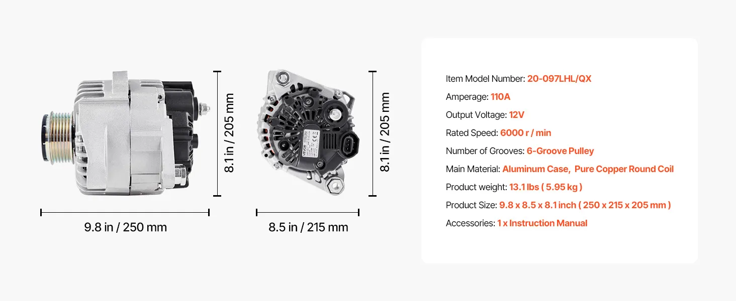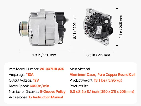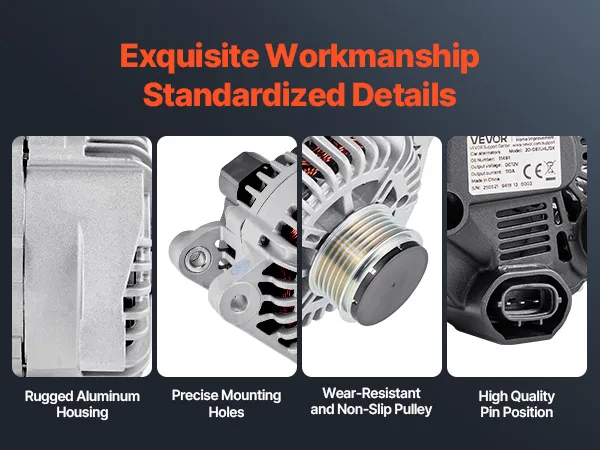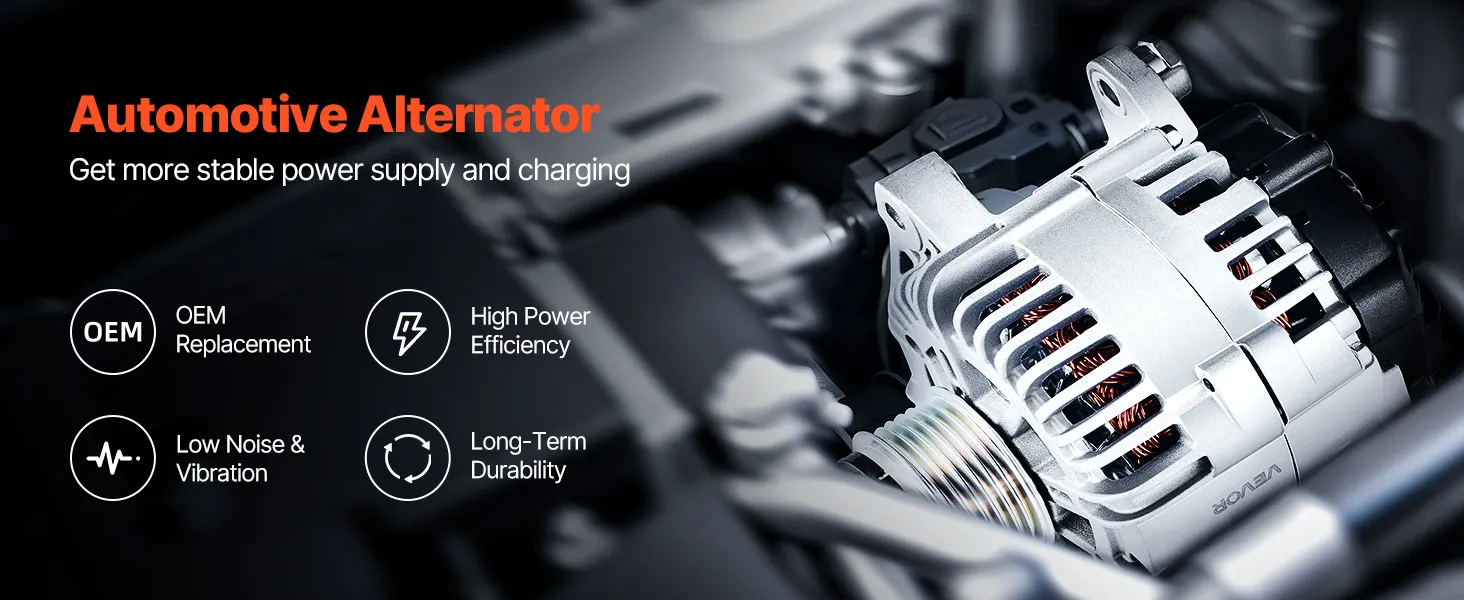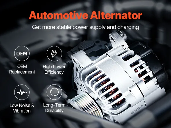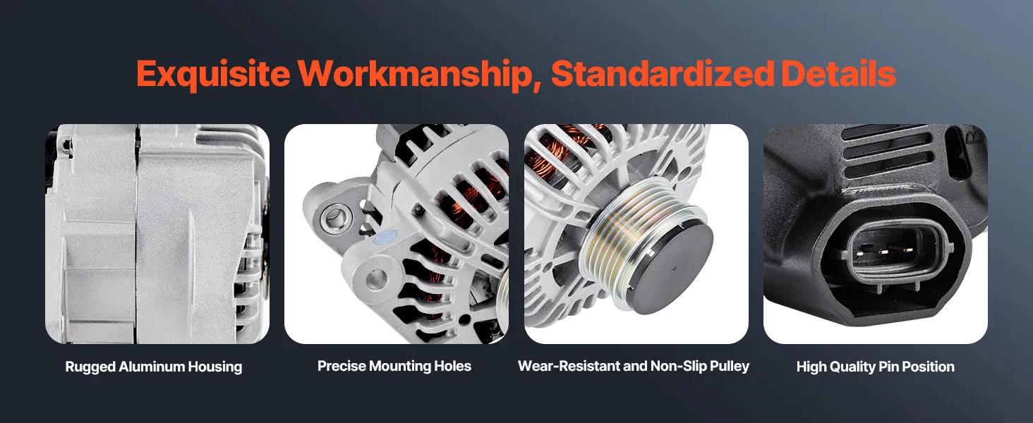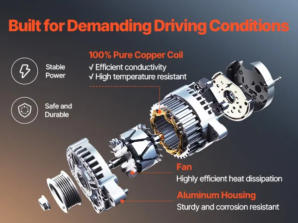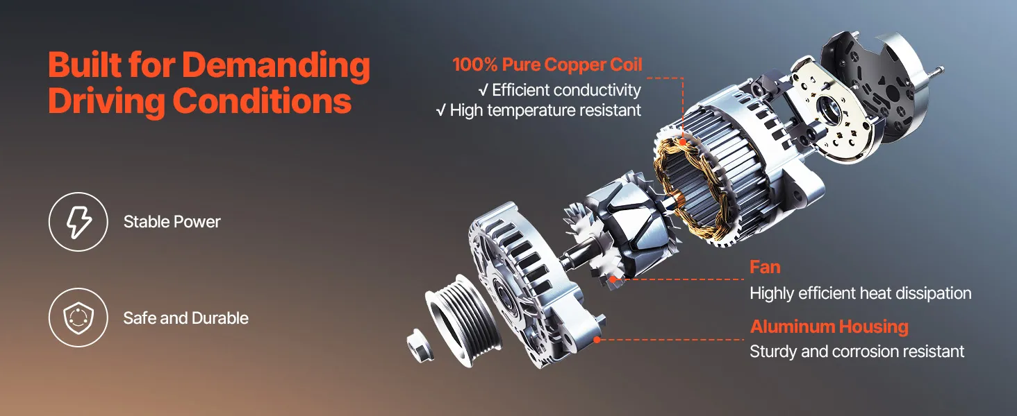 Our alternator replacement features pure copper coils for better durability than aluminum. The aluminum housing and cooling fan boost heat dissipation. It delivers a stable 130A output to support high-load devices like AC and premium sound systems.