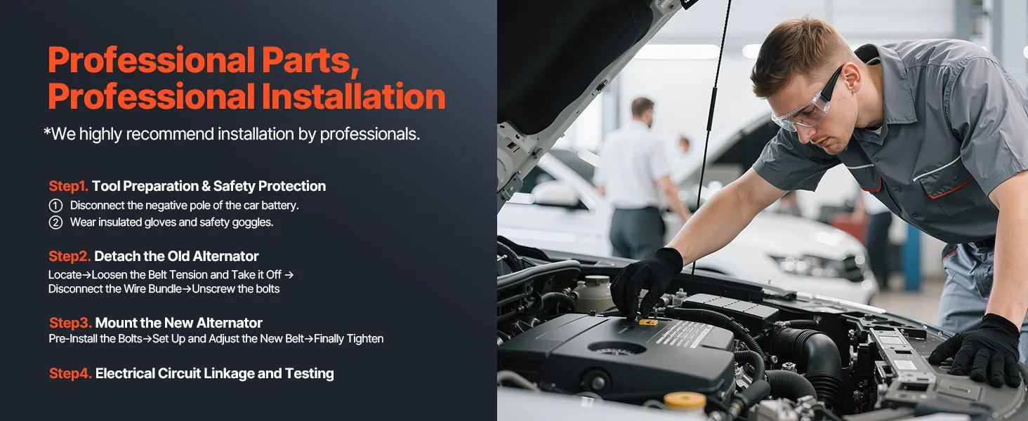 Durable Materials: Our automotive replacement alternator is built with high-temp-resistant copper coils and a lightweight aluminum housing with cooling fan. This combo improves heat dissipation and conductivity while withstanding tough conditions