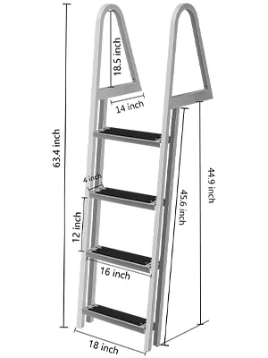 The dock ladder is durable, boasting a maximum weight capacity of 350 lbs. The vertical height of the installation is 44.9 inches.