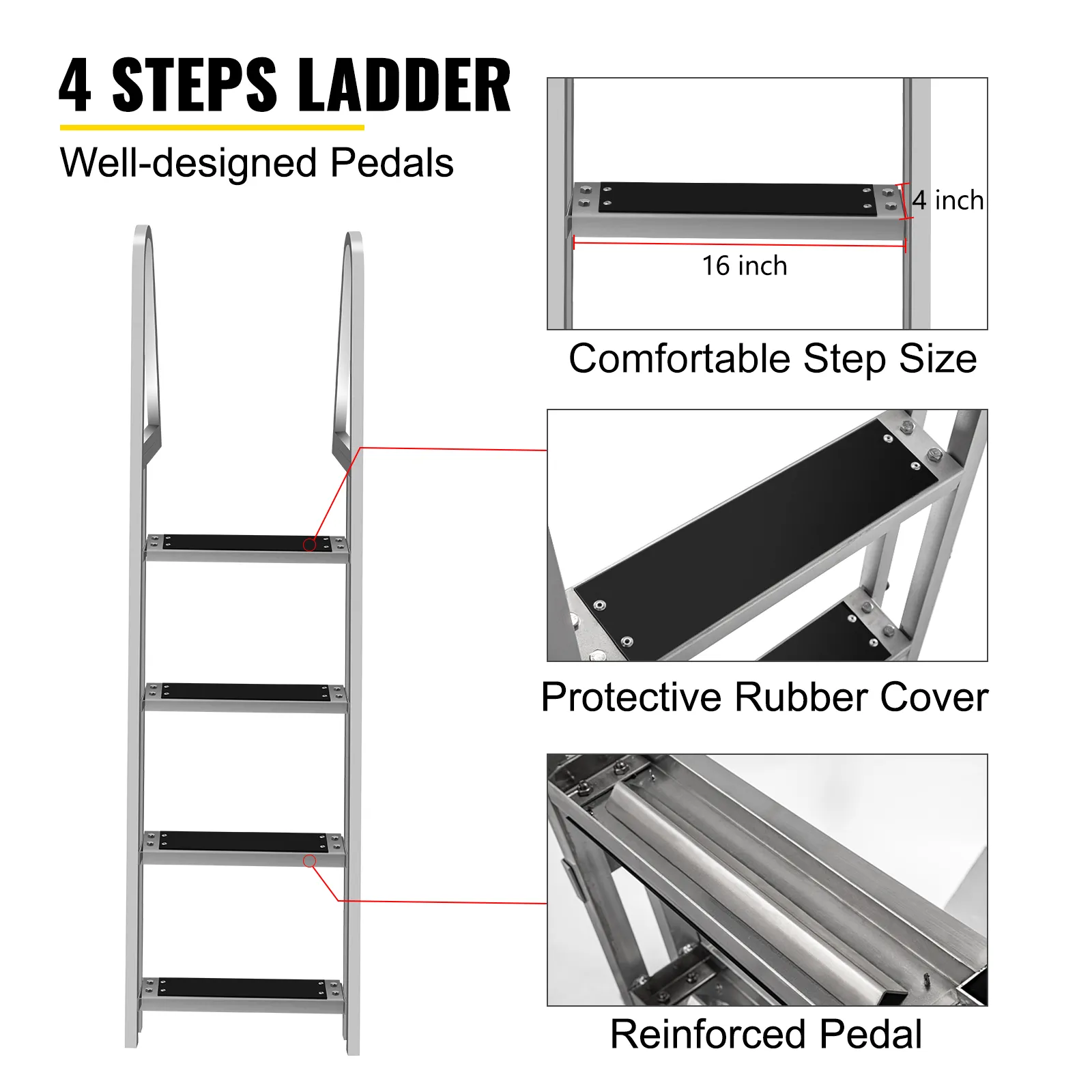 Anti-Skid & High Strength: We especially provide the rubber mat for each step to prevent accidental slipping and injuries. The reinforced dock steps get you in and out of the water with maximum safety.