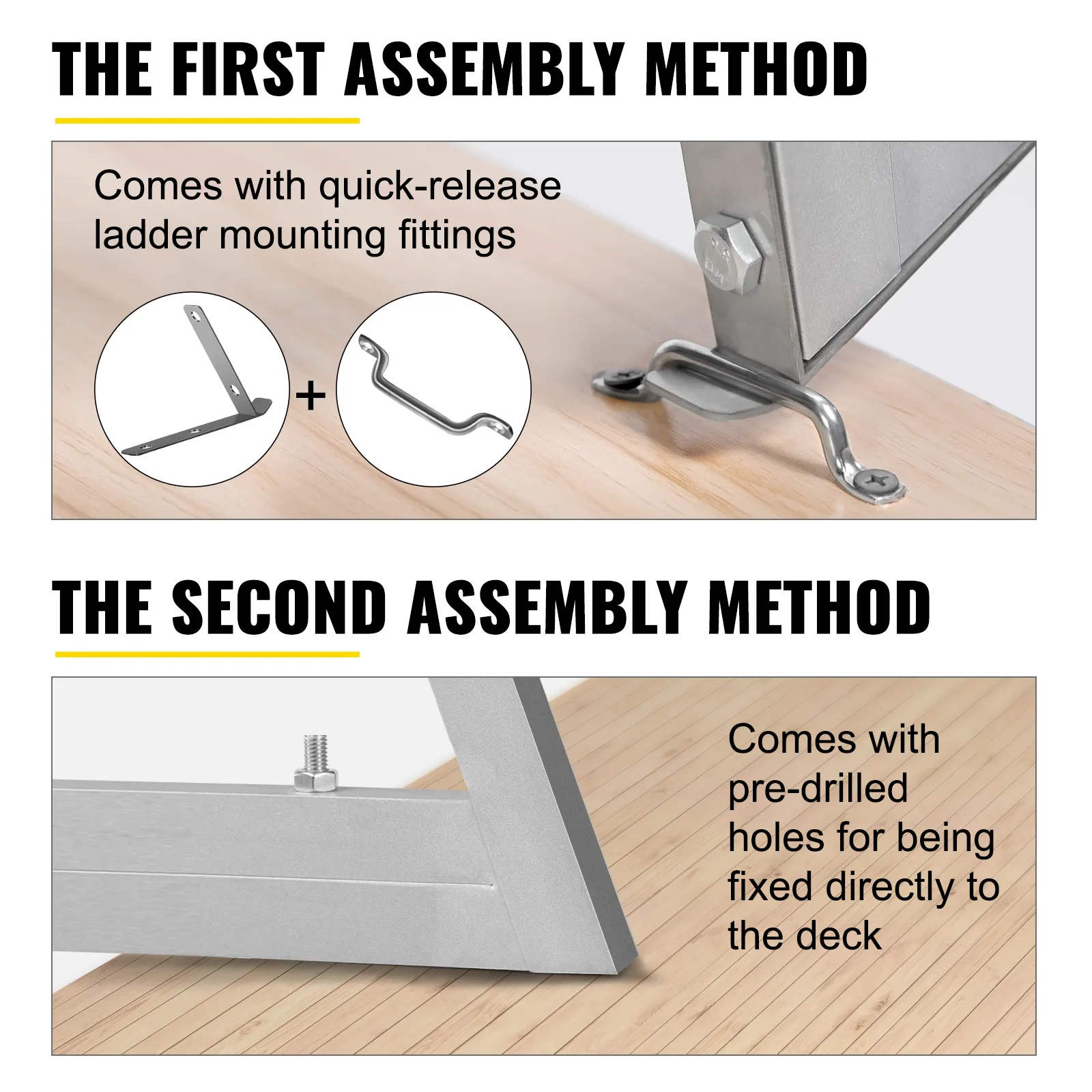 Thoughtful Design: The dock ladder is mounted with stainless steel mounting kit. Quick-release mounting fittings make it easy to remove the aluminum ladder at any time and install it in different places. Double angled handrails help to up and down easier.