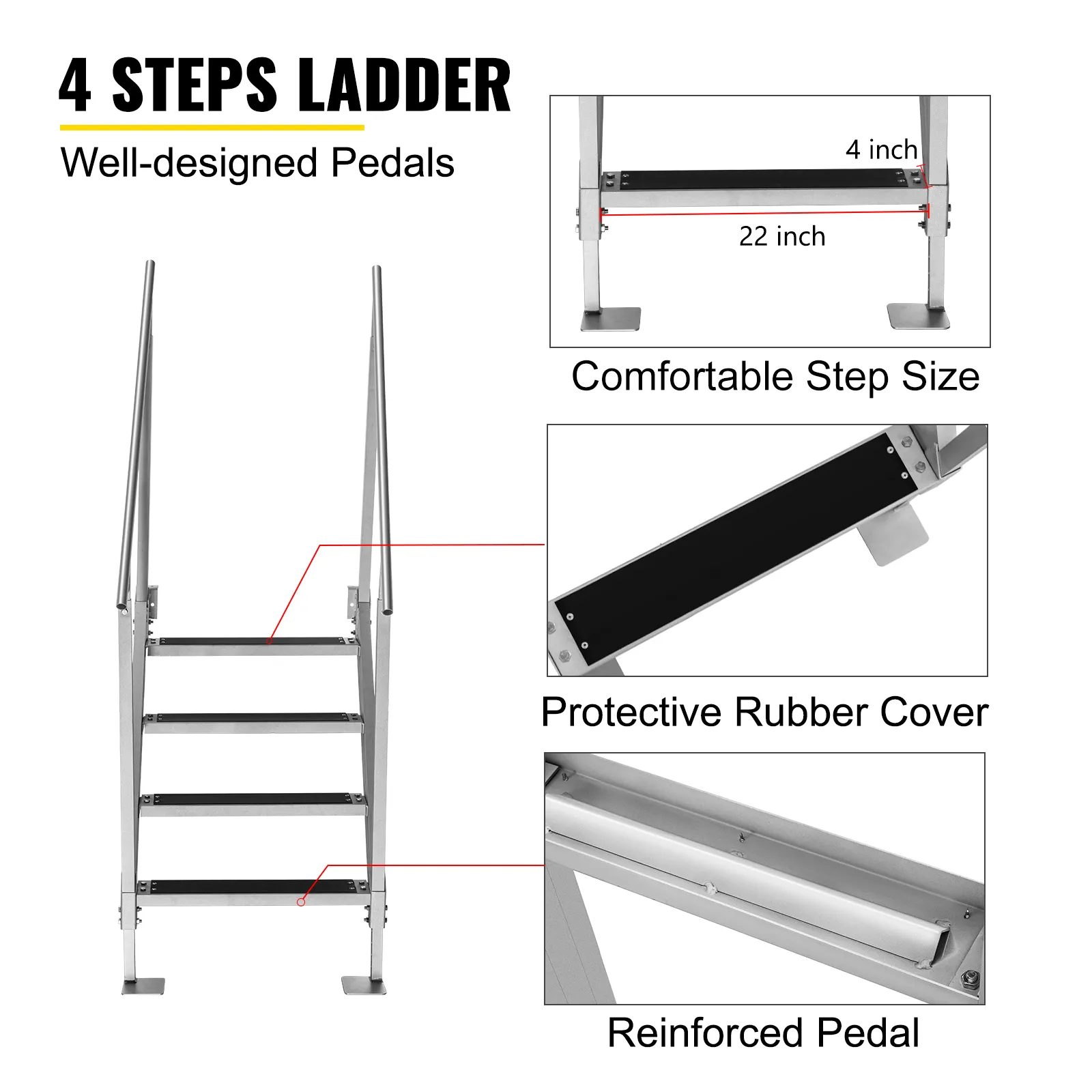 Aluminum Structure: The 4-step dock ladder is built by quality aluminum material, with an excellent grip, anti-corrosion, and anti-rust. The lightweight materials make this more portable for you.