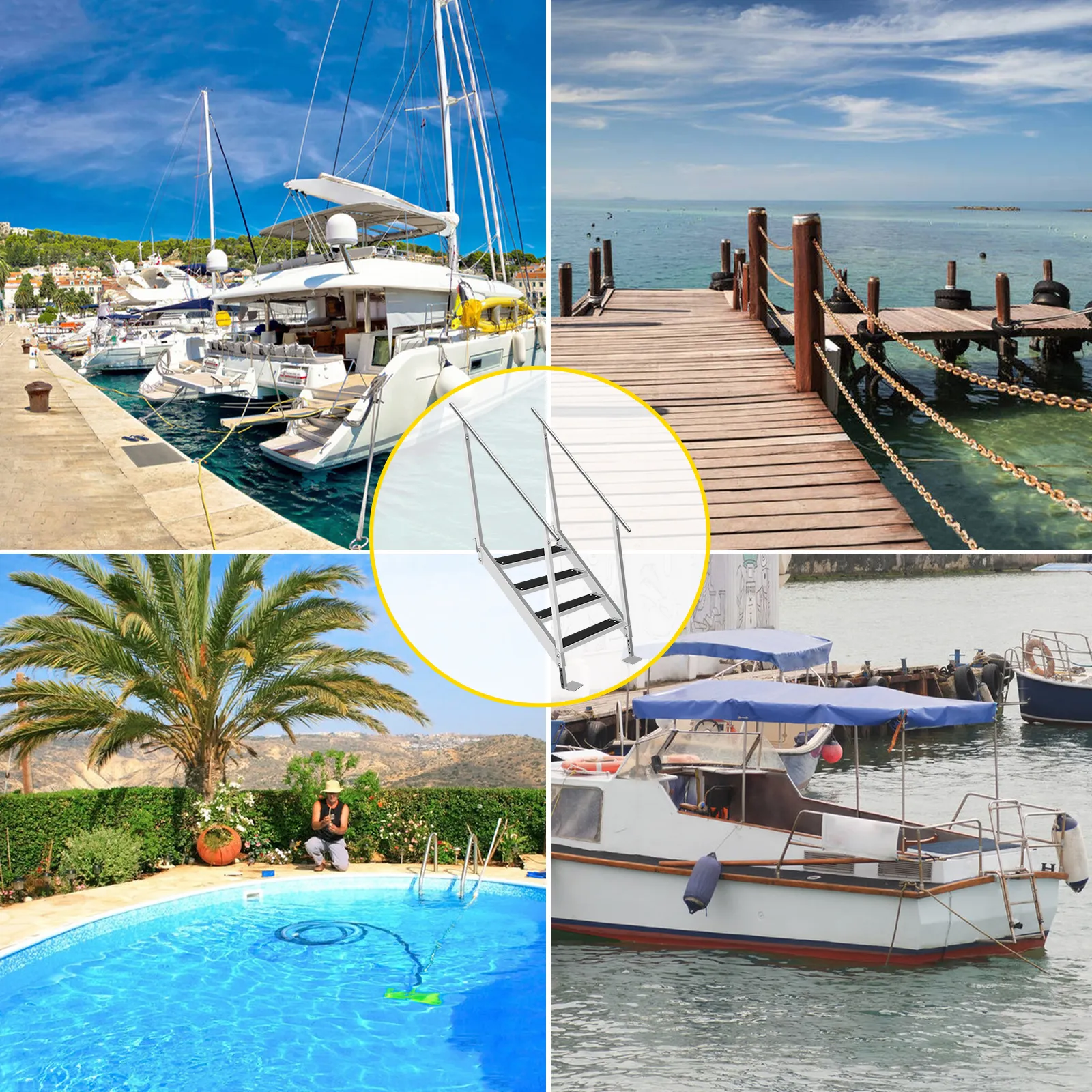 The aluminum ladders are suitable for your ship, dock, or swimming pool to make it easier for people to get on and off.