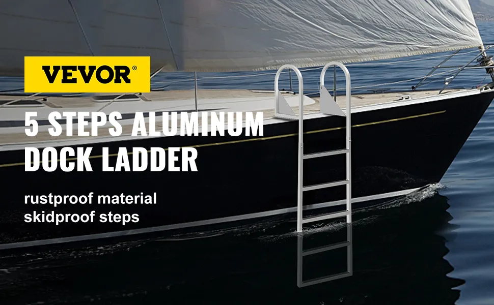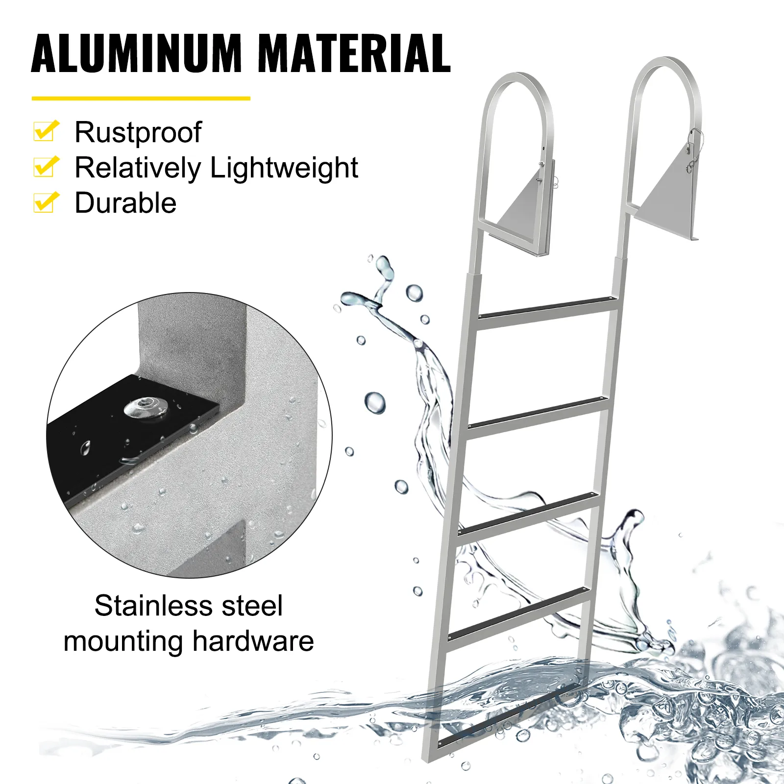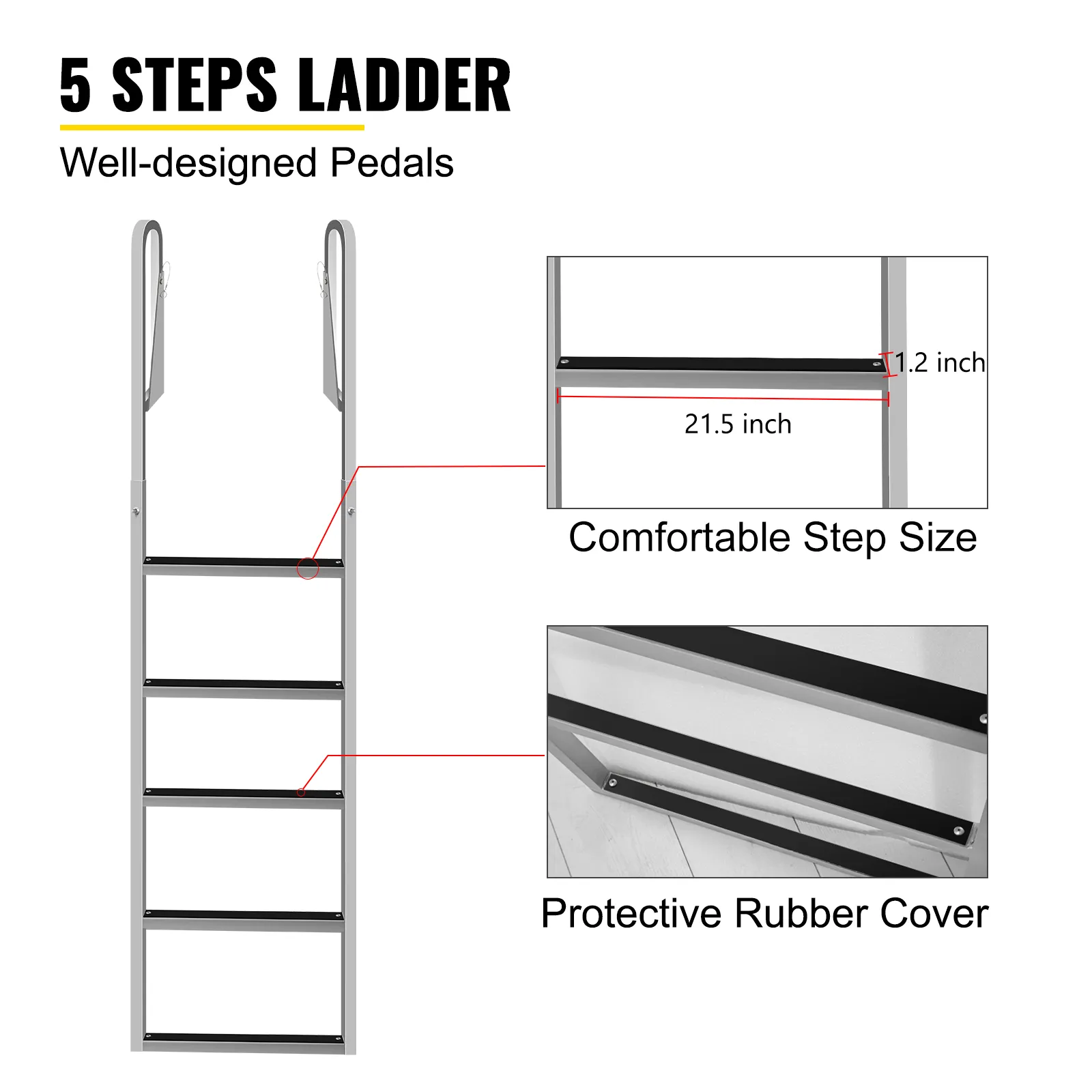 VEVOR Dock Ladders Flip Up, Dock Ladder with Rubber Mat, Swim Ladder Aluminum 5 Step, Each Step 546 x 30 mm, 160 kg Load, for Lake, Marine Boarding, Pool