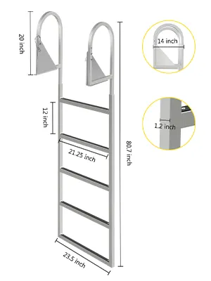 The dock ladder is durable, boasting a maximum weight capacity of 350 lbs. The vertical height of the installation is 60.7 inches.