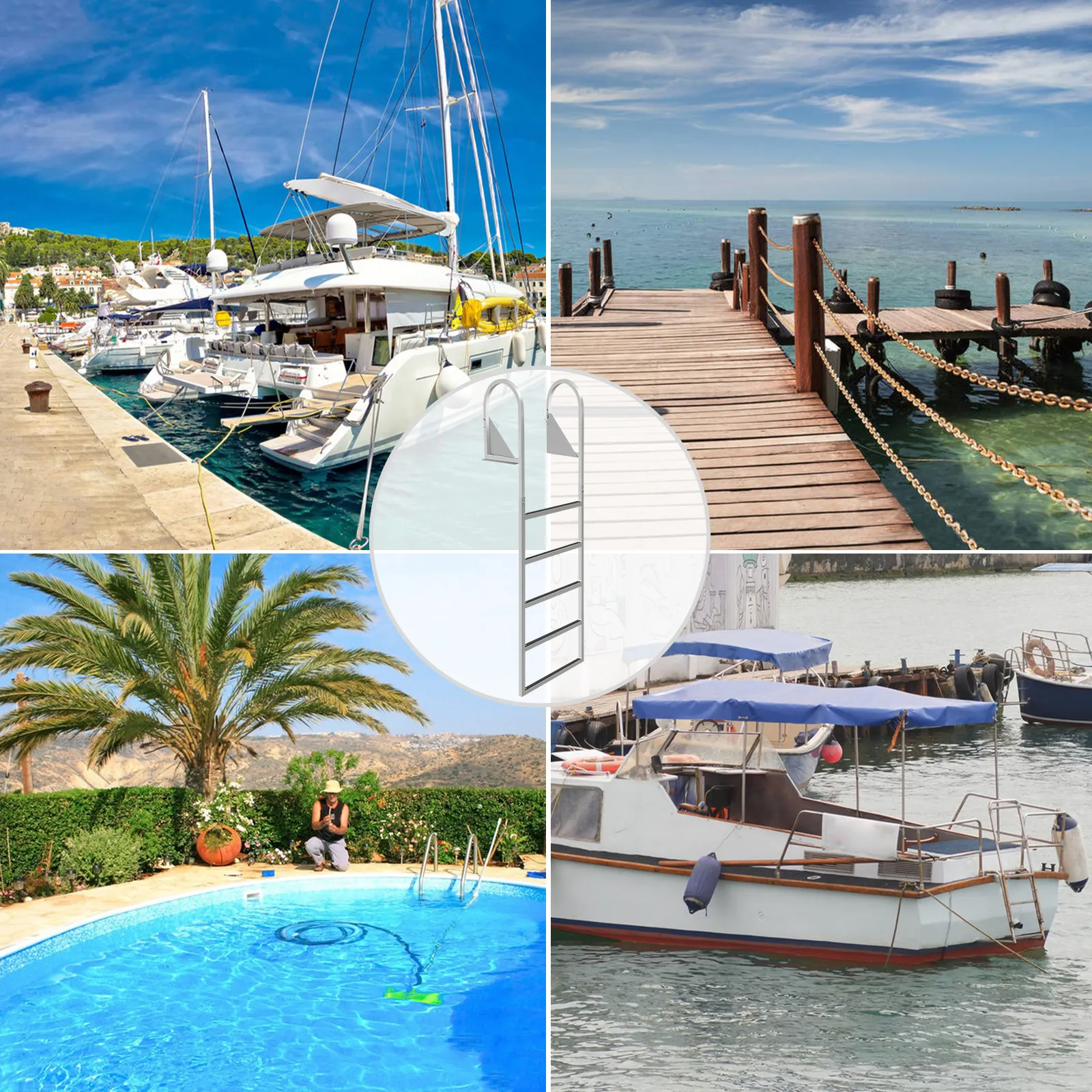 The aluminum ladders are suitable for your ship, dock, or swimming pool to make it easier for people to get on and off.