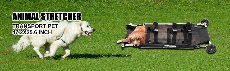 【HIGH-QUALITY MATERIAL】- The dog stretcher is constructed of steel frame and durable mesh envelope. 47.2x25.6 inch veterinary stretcher with wheels, perfect fit to the pet size.
