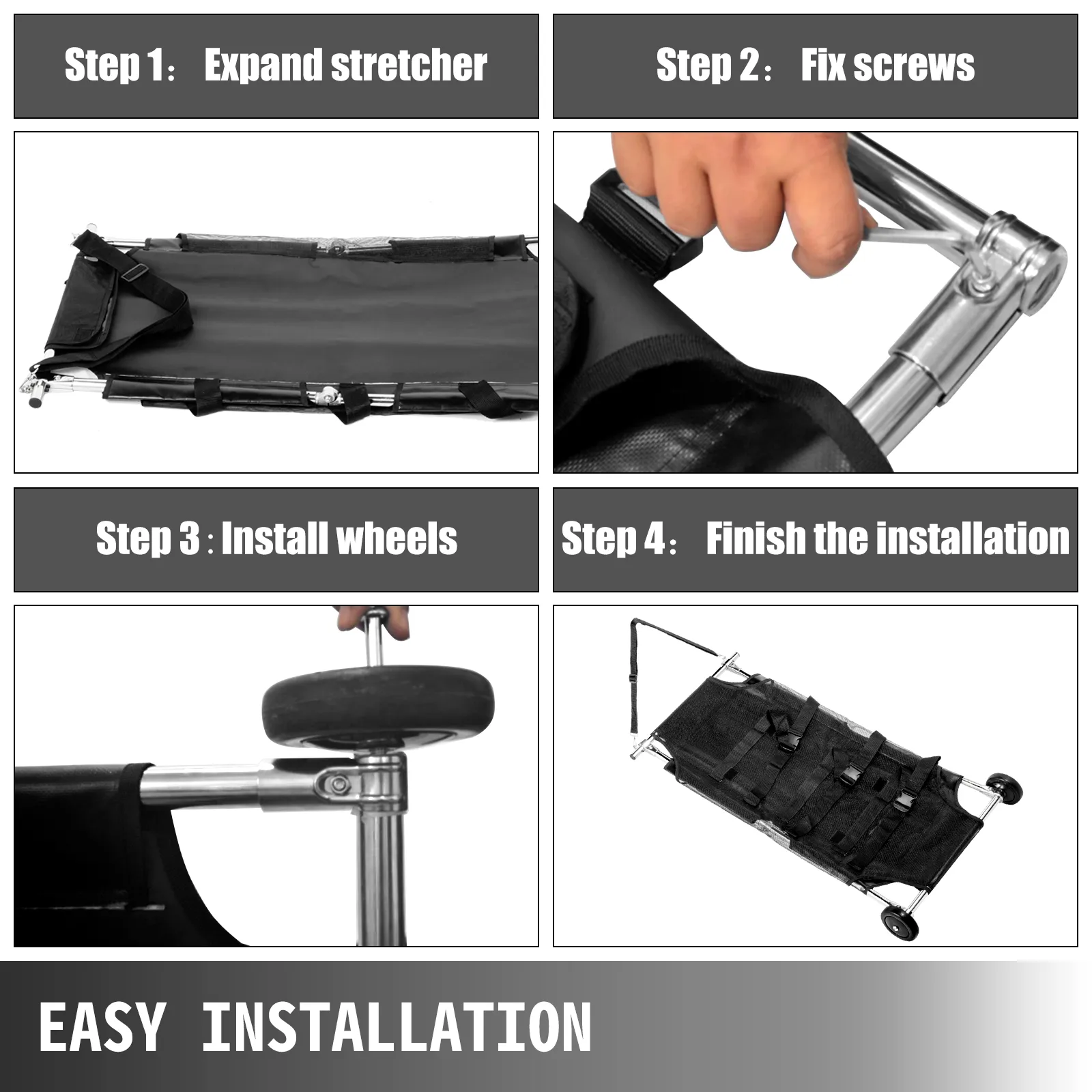 【WIDE APPLICATION】- The black pet transport stretcher with wheels protects your pet, and easy to move, is perfect for dogs, pets, and other animals.