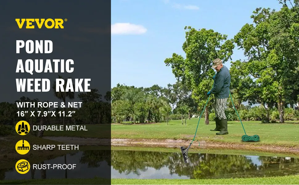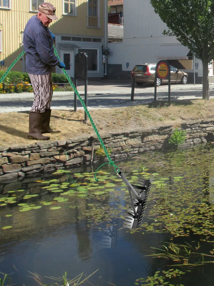 【EASY TO USE】- With a metal buckle, this aquatic weed rake is easy to strongly connected with the long rope. All you need to do is throw the rake with rope and pull it back, and then you can get a clean and beautiful lake or pond without weeds.