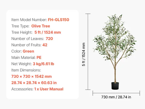 Lifelike All-Season Design: This artificial olive tree features vibrant green leaves and lifelike fruits. Made of durable rubber silk fabric with detailed textures and rich colour, it brings year-round freshness to any home or commercial space