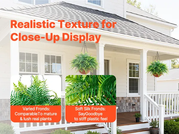 These faux ferns require minimal maintenance—simply blow dry on a low setting if exposed to rain occasionally to refresh. No watering, fertilizing, or trimming needed, while enjoying more time for family, hobbies, or relaxation.