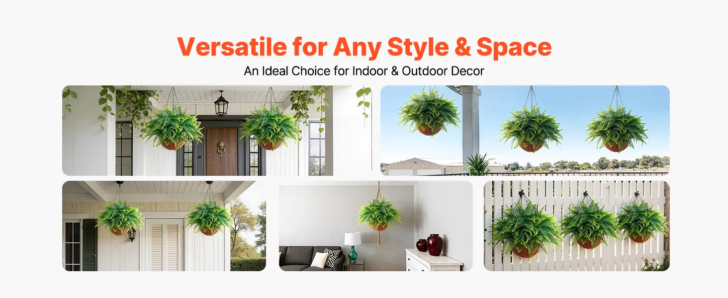 Versatile Decor: Our lightweight fern ferns can be displayed in hanging baskets, planters, or on the floor. Ideal for home, garden, office, weddings, and parties, it adds natural charm to any space.
