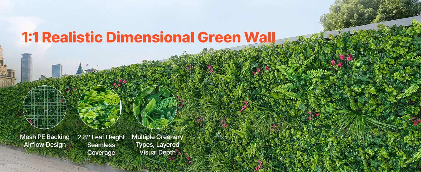 High-Density Privacy Coverage: Featuring 400 base grass pieces with stacked 3D leaves, this grass wall provides effective screening for second-floor balconies or backyard fences, enhancing privacy while adding a natural greenery backdrop