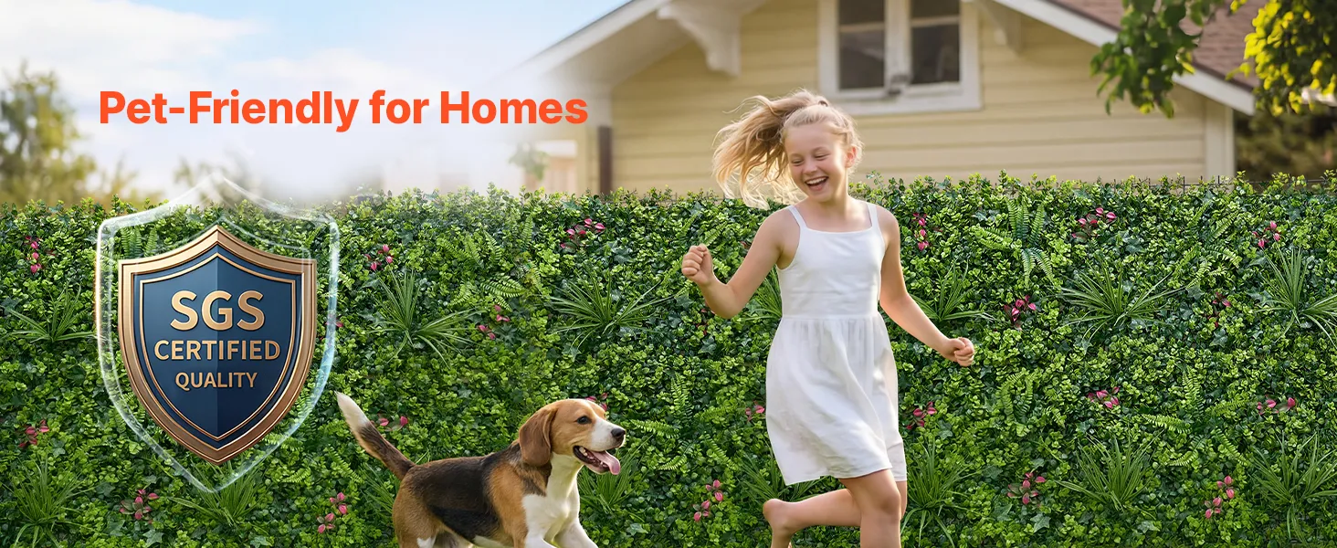 Indoor & Outdoor Friendly: SGS tested for quality and suitable for pet-owning households, this artificial boxwood panel works well as a decorative greenery backdrop. We recommend airing the panels in a well-ventilated area before installation