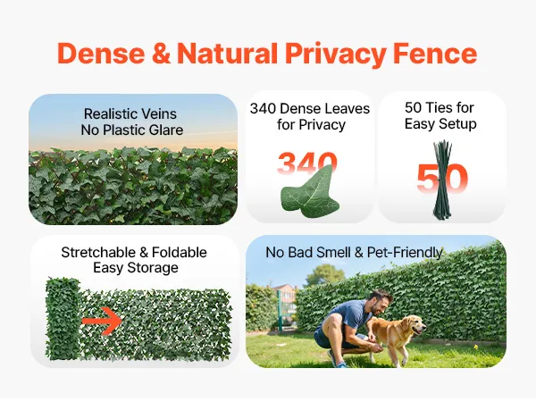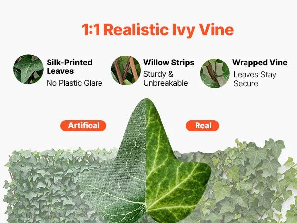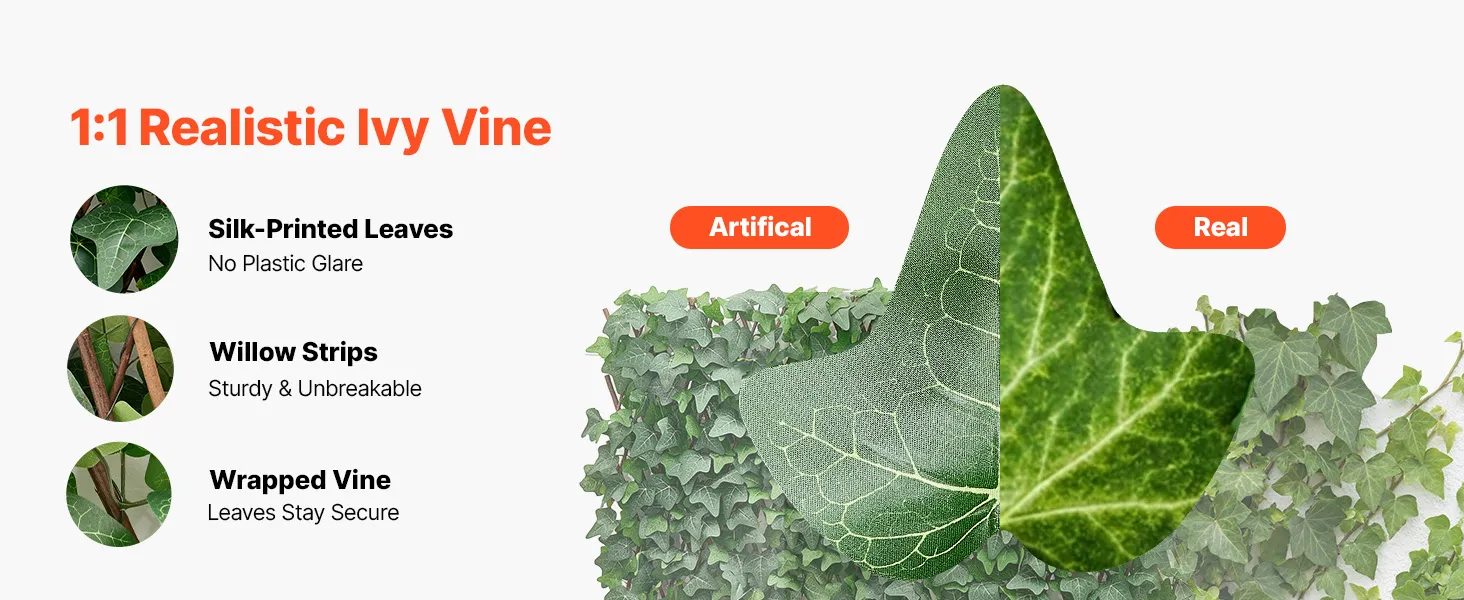 Realistic Natural Appearance: Screen-printed fabric leaves minimize plastic shine and replicate the look of real ivy under sunlight, while blended light and dark green tones deliver a lifelike visual effect from both near and far